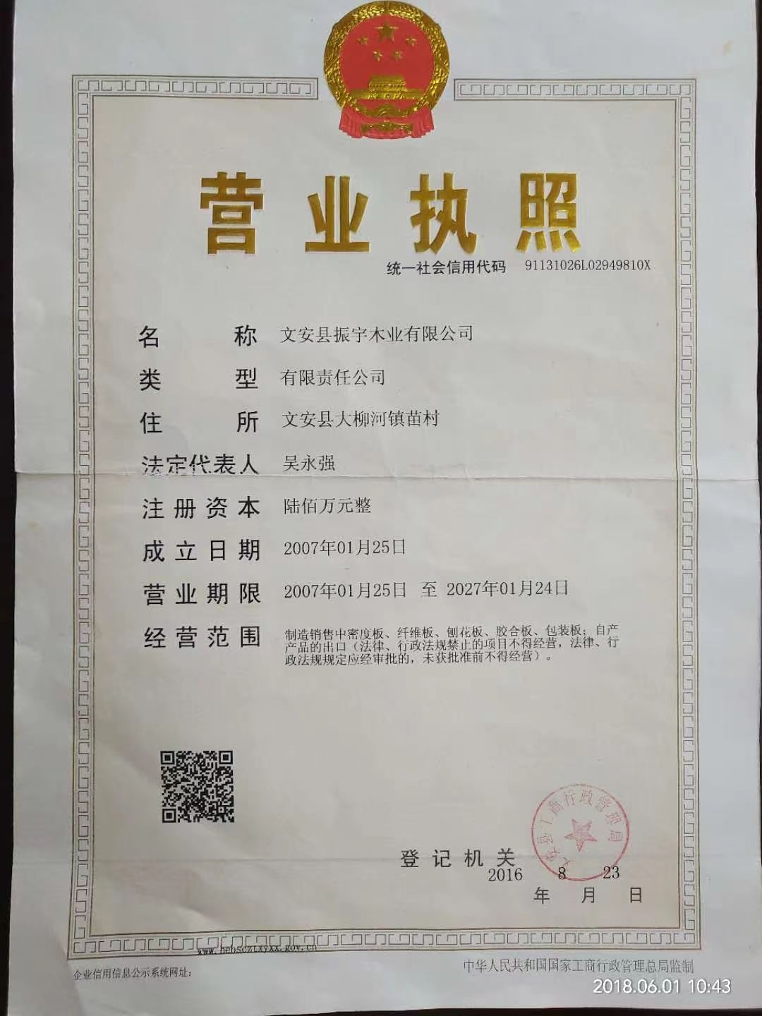 文安縣振宇木業有限公司位于文安縣大柳河鎮苗村文左公路南側,交通便利,地理位置優越,占地面積60000多平方米,于2003年3月籌建,2004年1月投產,開始稱“文安縣振宇中密度板廠”,2007年1月改為“文安縣振宇木業有限公司”。 …